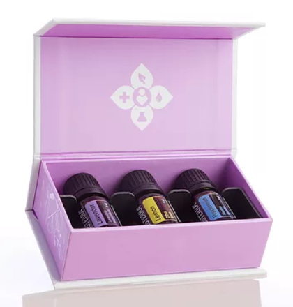 Includes a 5 mL bottle of dōTERRA's CPTG® Certified Pure Therapeutic Grade Lavender, Lemon, and Peppermint essential oils.
